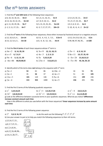 A Guide to Number Patterns, Sequences and Series Teaching Approach m/find-nth-term-2.html Examples on quadratic Anne says she can work out the general formula for the number of dots by taking the number of ... Document Viewer