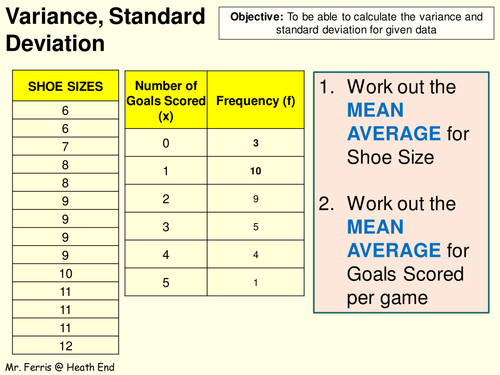 Standard Deviation And Variance (raw Data) - Schoolworkout